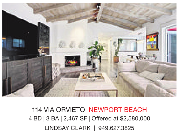 114 VIA ORVIETO NEWPORT BEACH 4BD|3BA|2,467 SF |Offered at $2,580,000 LINDSAY CLARK | 949.627.3825