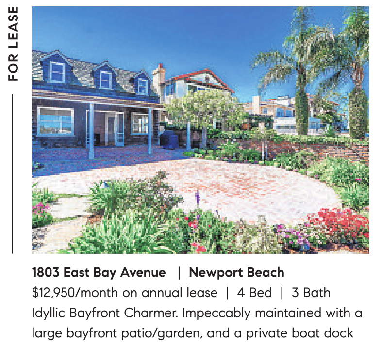 1803 East Bay Avenue | Newport Beach $12,950/month on annual lease | 4 Bed | 3 Bath Idyllic Bayfront Charmer. Impeccably maintained with a large bayfront patio/garden, and a private boat dock