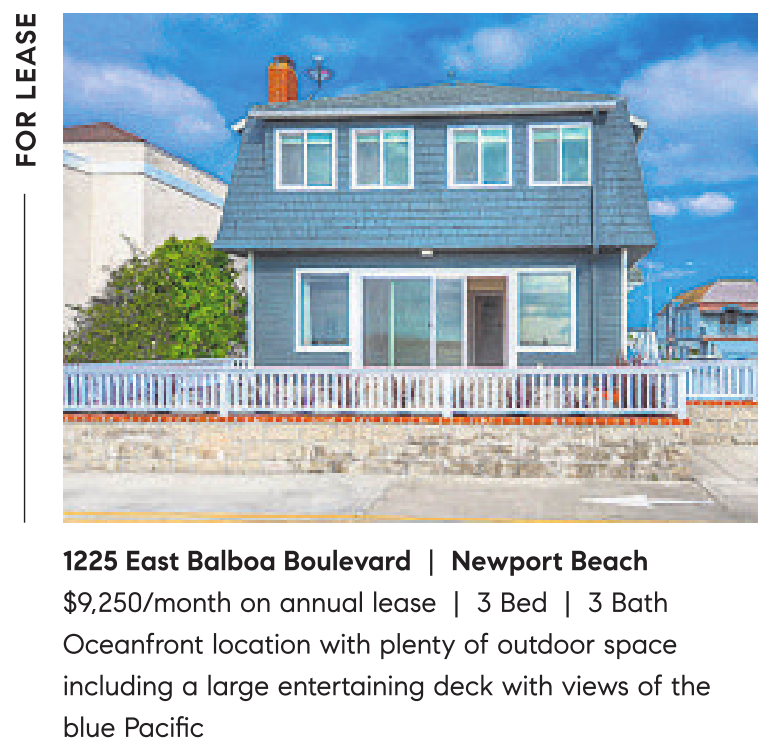 1225 East Balboa Boulevard | Newport Beach $9,250/month on annual lease | 3 Bed | 3 Bath Oceanfront location with plenty of outdoor space including a large entertaining deck with views of the