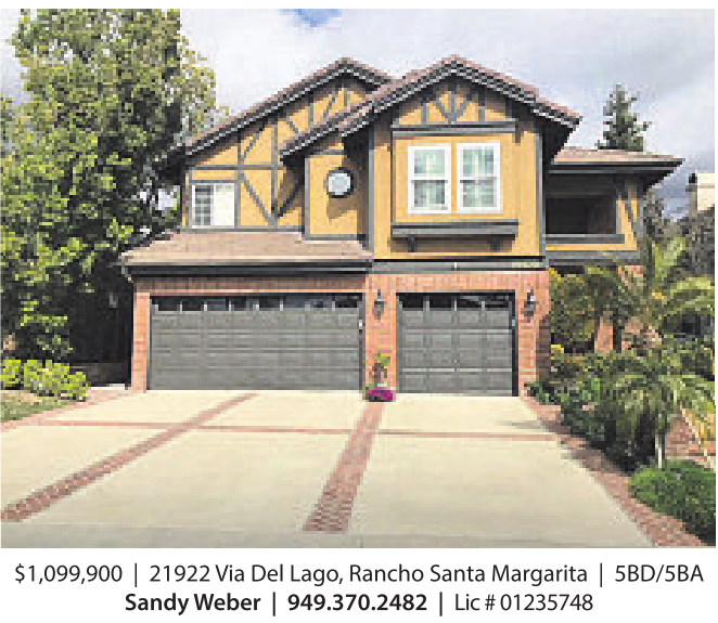 $1,099,900 | 21922 ViaDel Lago,Rancho SantaMargarita | 5BD/5BA Sandy Weber | 949.370.2482 | Lic #01235748