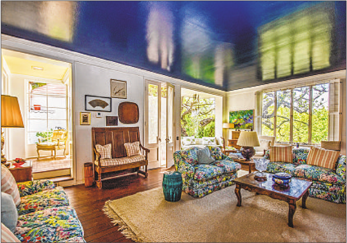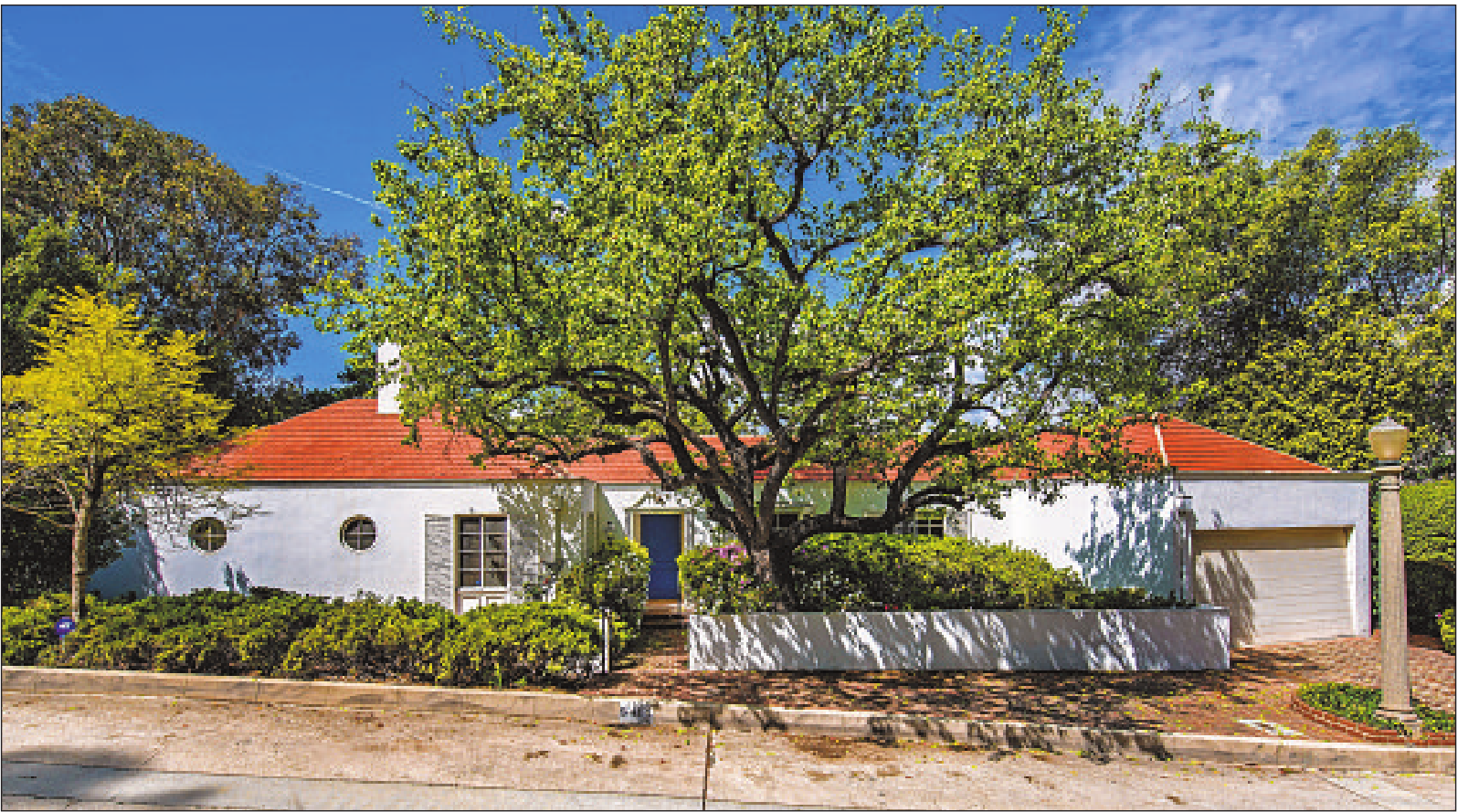 The stucco and red-tile roof house is a hybrid of Bermuda Colonial and English Regency styles. The style is often called Hollywood Regency, and its roots came from set designers working on motion pictures beginning in the 1920s and 1930s.