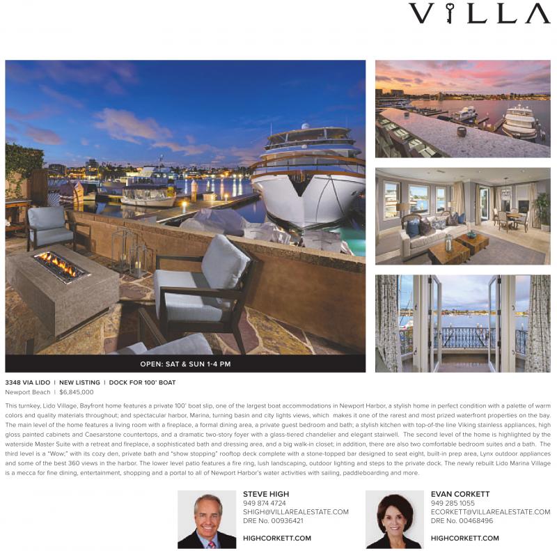 STEVE HIGH 949 874 4724 SHIGH@VILLAREALESTATE.COM DRE No. 00936421