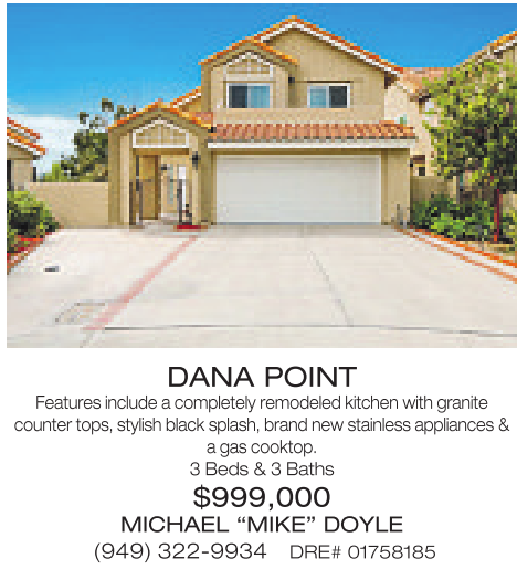 3Beds &3Baths $999,000 MICHAEL “MIKE” DOYLE (949) 322-9934 DRE# 01758185