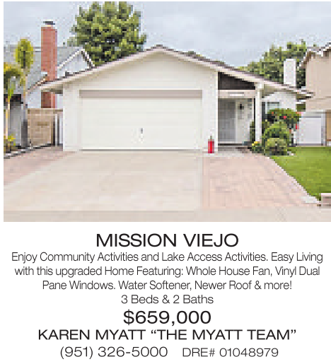 3Beds &2Baths $659,000 KAREN MYATT “THE MYATT TEAM” (951) 326-5000 DRE# 01048979
