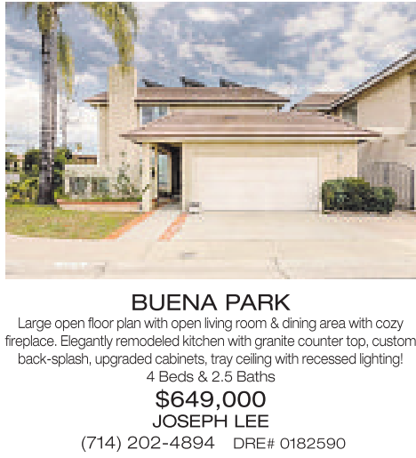 4Beds &2.5 Baths $649,000 JOSEPH LEE (714) 202-4894 DRE# 0182590