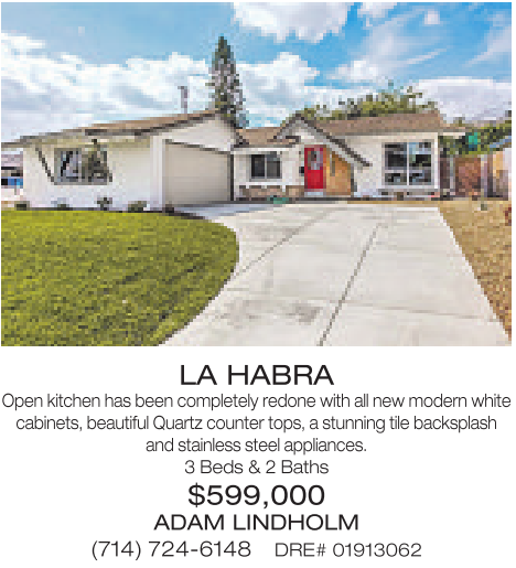 3Beds &2Baths $599,000 ADAM LINDHOLM (714) 724-6148 DRE# 01913062