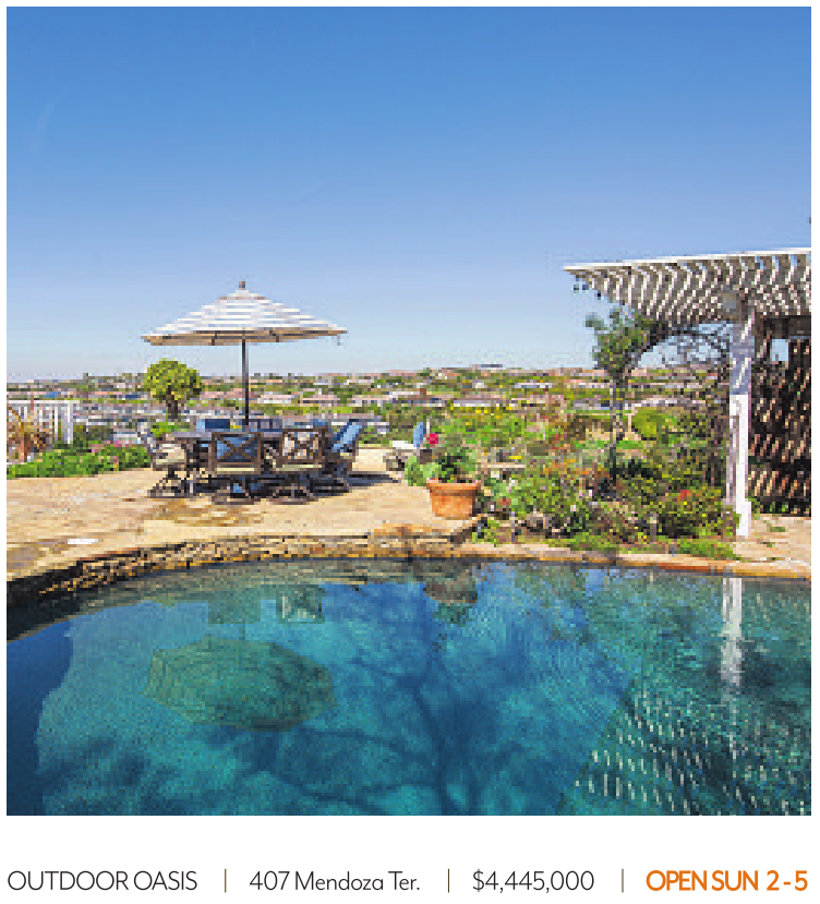 OUTDOOR OASIS | 407 Mendoza Ter. | $4,445,000 | OPEN SUN 2-5