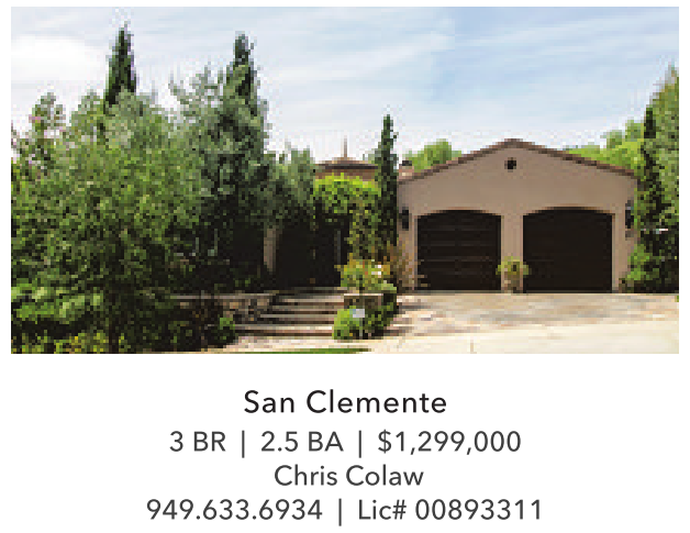 San Clemente 3 BR | 2.5 BA | $1,299,000 Chris Colaw 949.633.6934