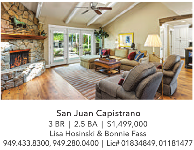 San Juan Capistrano 3 BR | 2.5 BA | $1,499,000 Lisa Hosinski & Bonnie Fass 949.433.8300, 949.280.0400 | Lic# 01834849, 01181477