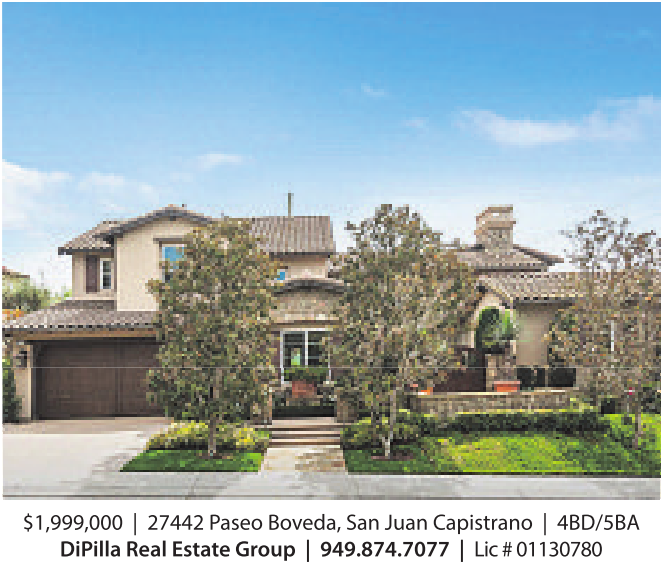 $1,999,000 | 27442 PaseoBoveda, San Juan Capistrano | 4BD/5BA DiPilla Real Estate Group | 949.874.7077 | Lic #01130780