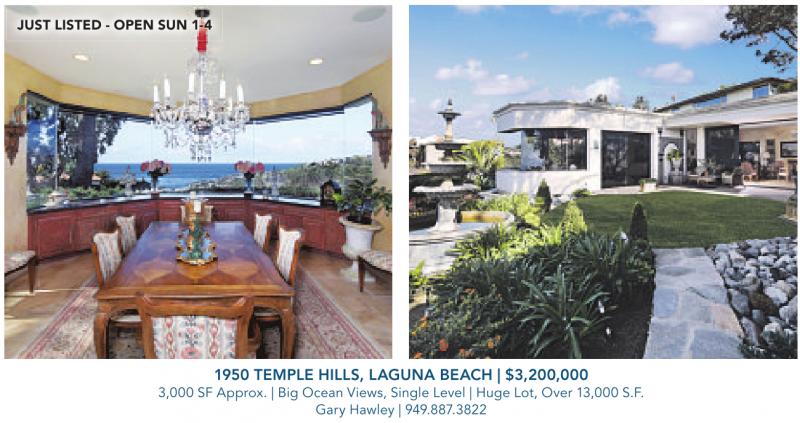 1950 TEMPLE HILLS, LAGUNA BEACH | $3,200,000 3,000 SF Approx. | Big Ocean Views, Single Level | Huge Lot, Over 13,000 S.F.