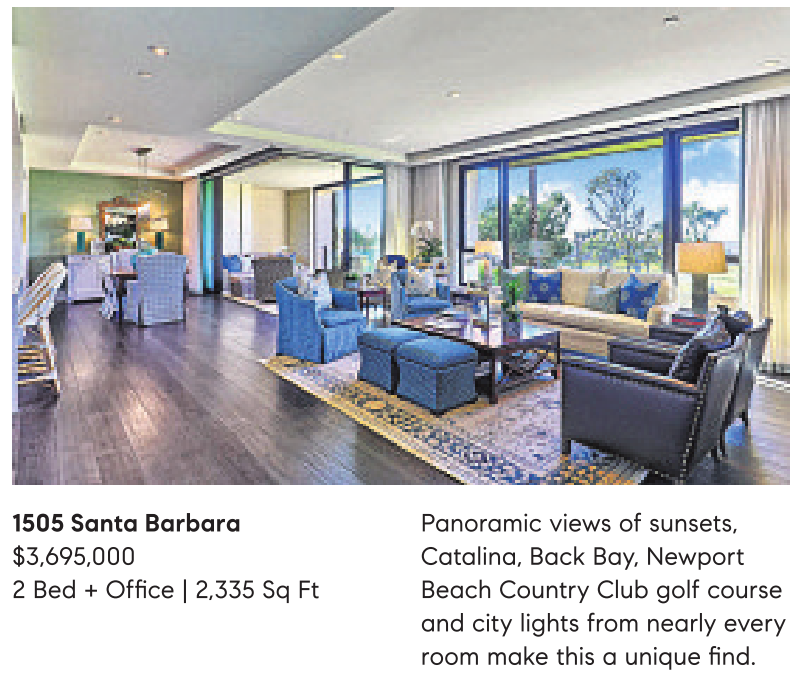 1505 Santa Barbara $3,695,000 Panoramic views of sunsets, Catalina, Back Bay, Newport Beach Country Club golf course and city lights from nearly every