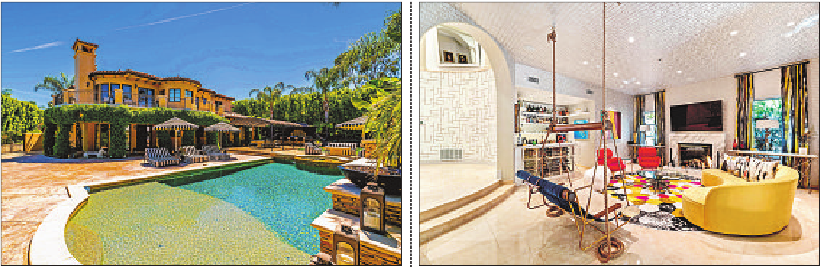 Another highlight comes in the step-down living room, which boasts a wet bar and swinging bench.