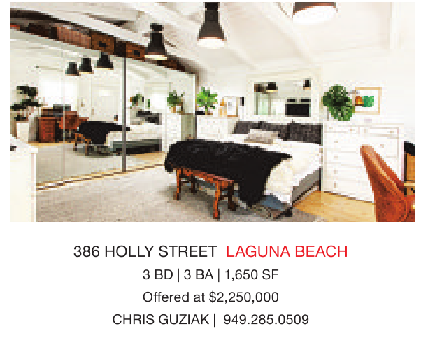 386 HOLLY STREET LAGUNA BEACH 3BD|3BA|1,650 SF Offered at $2,250,000 CHRIS GUZIAK | 949.285.0509