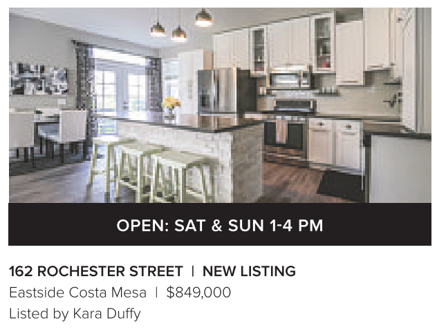 OPEN: SAT & SUN 1-4 PM 162 ROCHESTER STREET | NEW LISTING Eastside Costa Mesa | $849,000 Listed by Kara Duffy See also