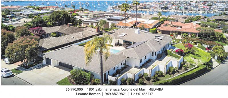 $6,990,000 | 1801Sabrina Terrace, Corona del Mar | 4BD/4BA Leanne Boman | 949.887.9871 | Lic #01456237