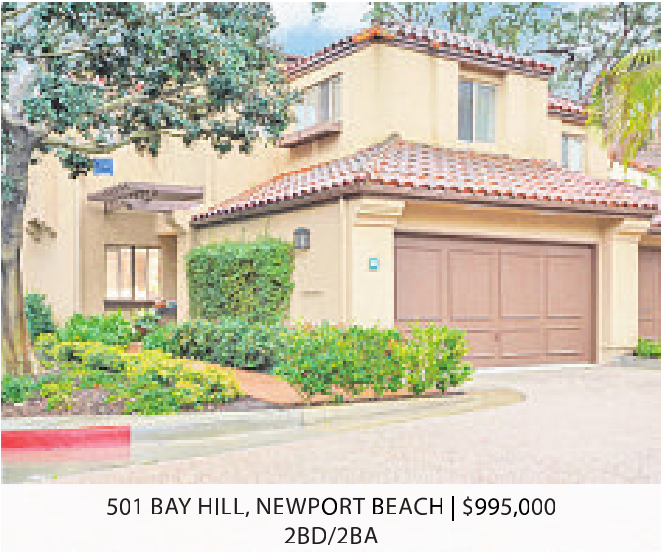 501 BAY HILL,NEWPORT BEACH |$995,000 2BD/2BA
