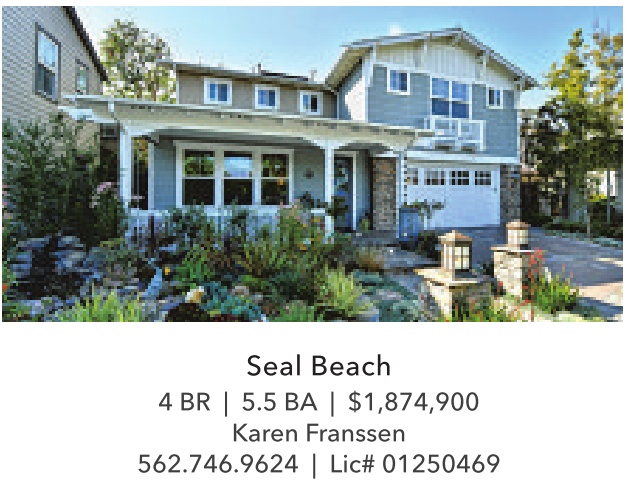 Seal Beach 4 BR | 5.5 BA | $1,874,900 Karen Franssen 562.746.9624 | Lic# 01250469