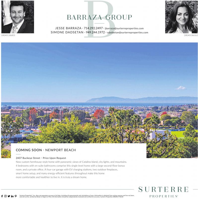 2407 Buckeye Street Price Upon Request New custom farmhouse-style home with panoramic views of Catalina Island, city lights, and mountains. more comfortable and healthier to live in. It is truly a dream home.