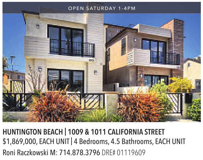 HUNTINGTONBEACH | 1009 &1011 CALIFORNIA STREET $1,869,000, EACH UNIT | 4Bedrooms, 4.5 Bathrooms, EACH UNIT