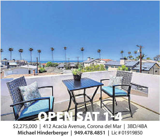 $2,275,000 | 412 Acacia Avenue,Corona del Mar | 3BD/4BA Michael Hinderberger | 949.478.4851 | Lic #01919850