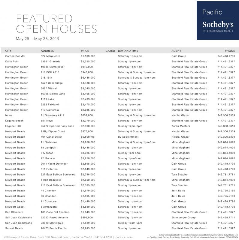 Huntington Beach 218 16th $6,488,000 Saturday & Sunday 1pm-4pm Stanfield Real Estate Group 714.421.3377