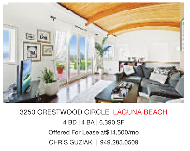 3250 CRESTWOOD CIRCLE LAGUNA BEACH 4BD|4BA|6,390 SF Offered For Lease at$14,500/mo CHRIS GUZIAK | 949.285.0509
