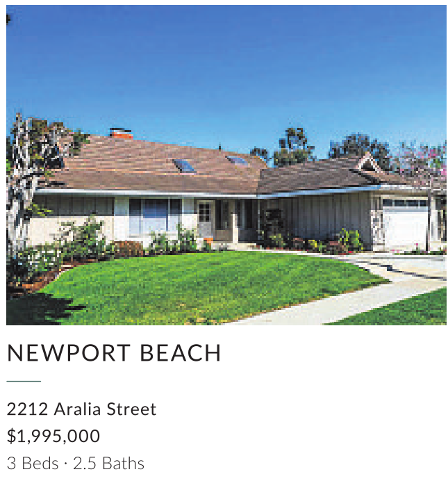 NEWPORT BEACH 2212 Aralia Street $1,995,000 3 Beds 2.5 Baths See also