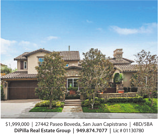 $1,999,000 | 27442 PaseoBoveda, San Juan Capistrano | 4BD/5BA DiPilla Real Estate Group | 949.874.7077 | Lic #01130780