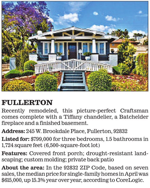 About the area: In the 92832 ZIP Code, based on seven sales, the median price for single-family homes in April was $615,000, up 15.3% year over year, according to CoreLogic.