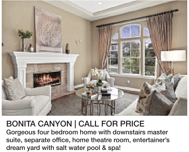 BONITA CANYON | CALL FOR PRICE Gorgeous four bedroom home with downstairs master suite, separate office, home theatre room, entertainer’s dream yard with salt water pool & spa!