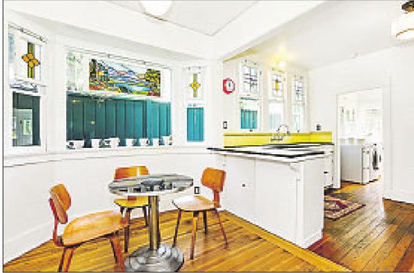 Aperiod-vibe kitchen, a dining room and four bedrooms also lie within about 3,300 square feet of living space. The three bathrooms were previously restored.