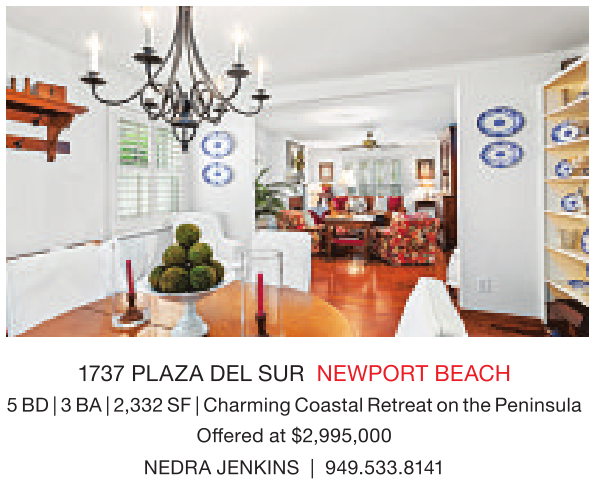 1737 PLAZA DEL SUR NEWPORT BEACH 5BD|3BA|2,332 SF |CharmingCoastal Retreat on thePeninsula Offered at $2,995,000 NEDRA JENKINS | 949.533.8141