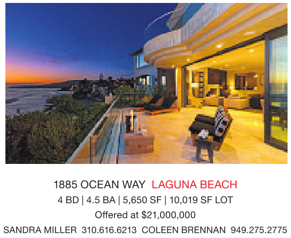 1885 OCEAN WAY LAGUNA BEACH 4BD|4.5 BA|5,650 SF |10,019 SF LOT Offered at $21,000,000 SANDRA MILLER 310.616.6213 COLEEN BRENNAN 949.275.2775