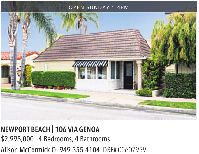 NEWPORTBEACH | 106 VIA GENOA $2,995,000 | 4Bedrooms, 4Bathrooms
