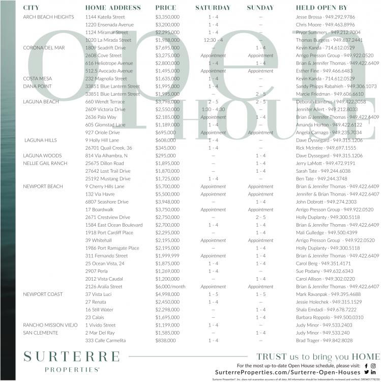 1020 La Mirada Street $1,988,000 12:30 - 4 — Thomas Burgess · 949.637.2441