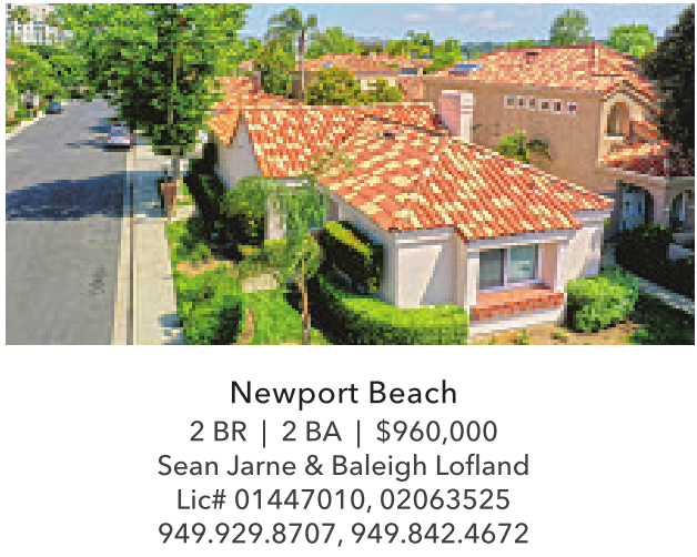 Newport Beach 2 BR | 2 BA | $960,000 Sean Jarne & Baleigh Lofland Lic# 01447010, 02063525 949.929.8707, 949.842.4672