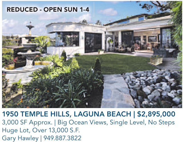 1950 TEMPLE HILLS, LAGUNA BEACH | $2,895,000 3,000 SF Approx. | Big Ocean Views, Single Level, No Steps Huge Lot, Over 13,000 S.F. Gary Hawley | 949.887.3822