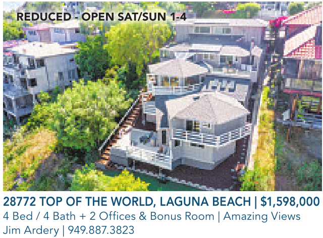 28772 TOP OF THE WORLD, LAGUNA BEACH | $1,598,000 4 Bed / 4 Bath + 2 Offices & Bonus Room | Amazing Views Jim Ardery | 949.887.3823