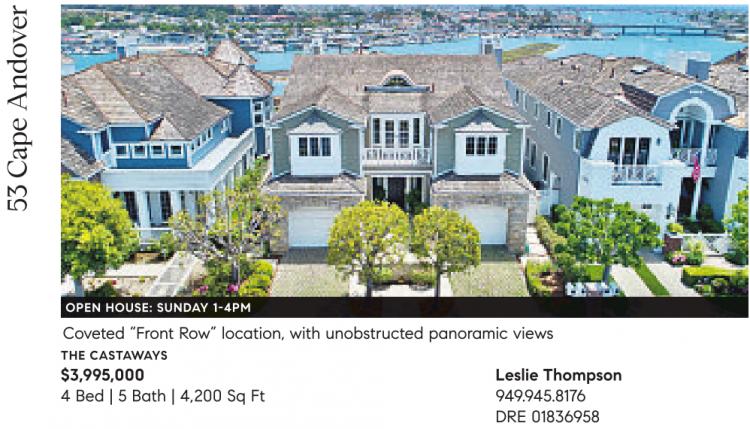 Coveted “Front Row” location, with unobstructed panoramic views THE CASTAWAYS $3,995,000 Leslie Thompson 4 Bed | 5 Bath | 4,200 Sq Ft 949.945.8176 DRE 01836958
