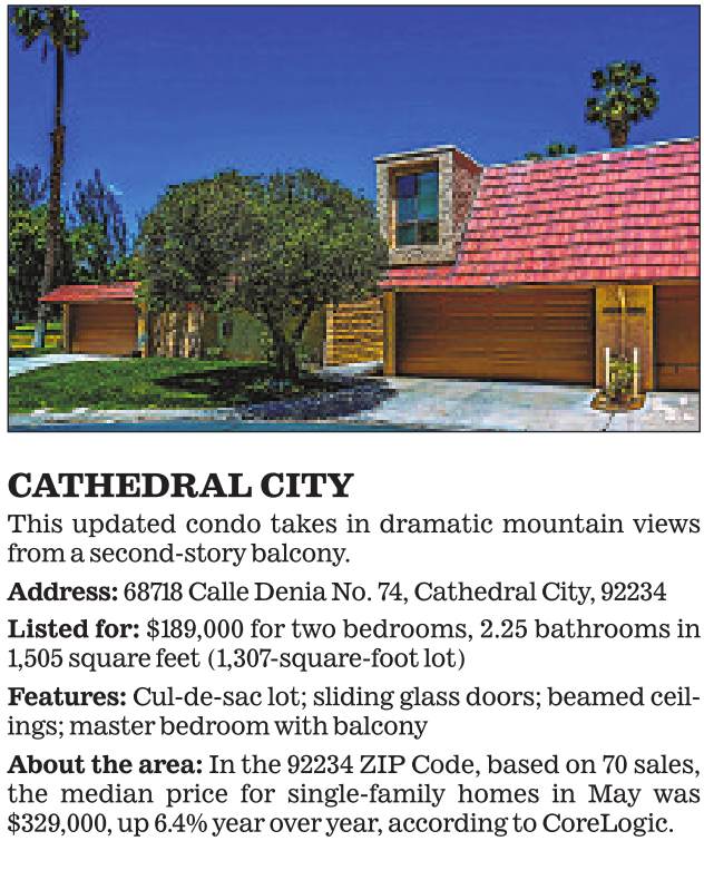 CATHEDRAL CITY This updated condo takes in dramatic mountain views from a second-story balcony.