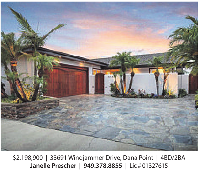 $2,198,900 | 33691 Windjammer Drive, Dana Point | 4BD/2BA Janelle Prescher | 949.378.8855 | Lic #01327615