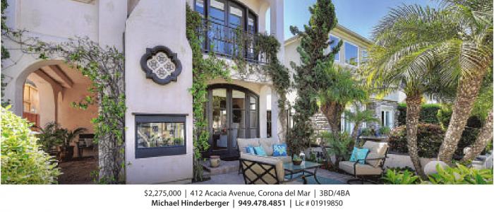 $2,275,000 | 412 Acacia Avenue,Corona del Mar | 3BD/4BA Michael Hinderberger | 949.478.4851 | Lic #01919850