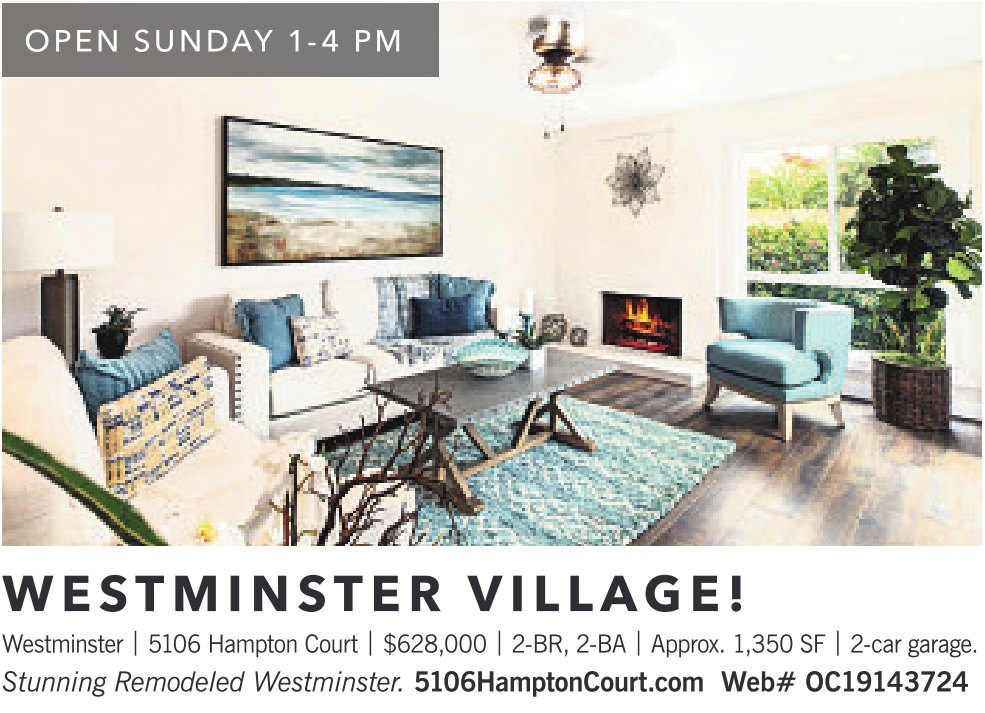 Westminster | 5106 Hampton Court | $628,000 | 2-BR, 2-BA | Approx. 1,350 SF | 2-car garage. Stunning Remodeled Westminster. 5106HamptonCourt.com Web# OC19143724