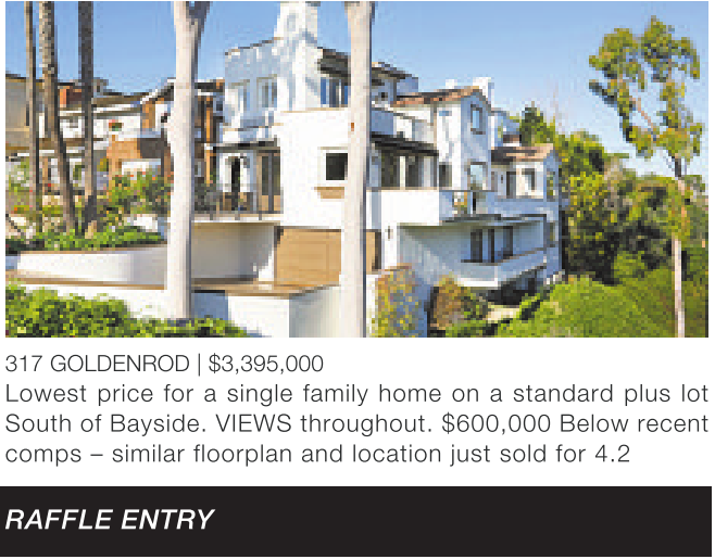 317 GOLDENROD | $3,395,000 Lowest price for a single family home on a standard plus lot South of Bayside. VIEWS throughout. $600,000 Below recent comps – similar floorplan and location just sold for 4.2