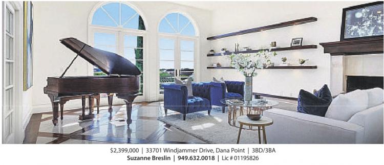 $2,399,000 | 33701 Windjammer Drive, Dana Point | 3BD/3BA Suzanne Breslin | 949.632.0018 | Lic #01195826