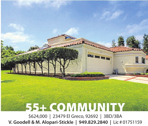 $624,000 | 23479 El Greco, 92692 | 3BD/3BA V. Goodell &M.Alopari-Stickle | 949.829.2840 | Lic #01751159