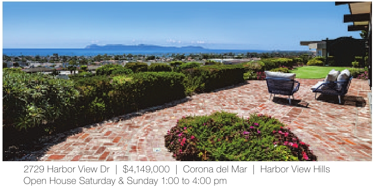 2729 Harbor View Dr | $4,149,000 | Corona del Mar | Harbor View Hills Open House Saturday & Sunday 1:00 to 4:00 pm