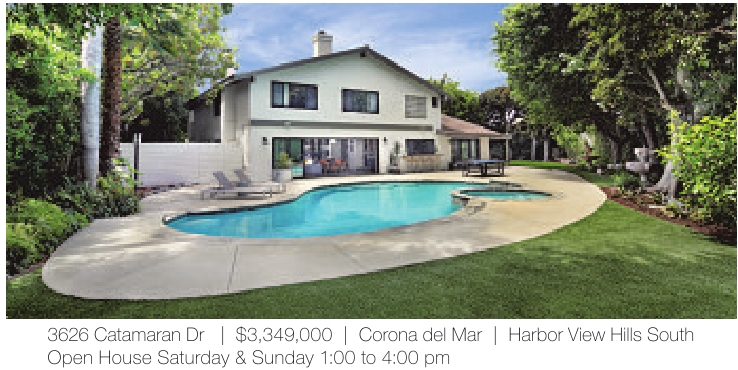 3626 Catamaran Dr | $3,349,000 | Corona del Mar | Harbor View Hills South Open House Saturday & Sunday 1:00 to 4:00 pm