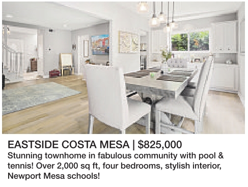EASTSIDE COSTA MESA | $825,000 Stunning townhome in fabulous community with pool & tennis! Over 2,000 sq ft, four bedrooms, stylish interior, Newport Mesa schools!